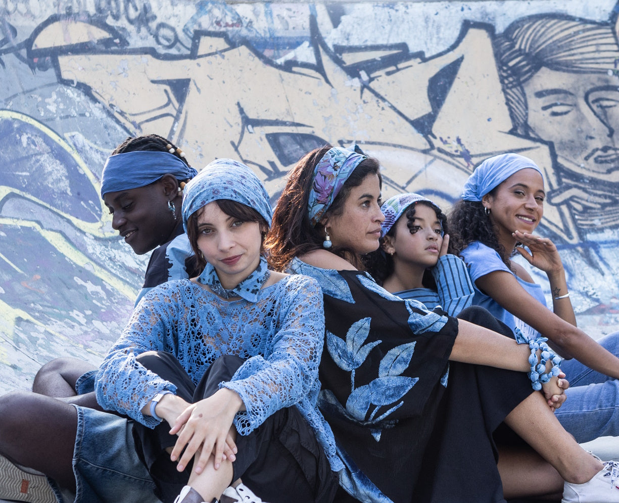 These clothes are hand-dyed with pastel blue from Toulouse and are made from natural and precious fabrics, mainly woven and printed in France.