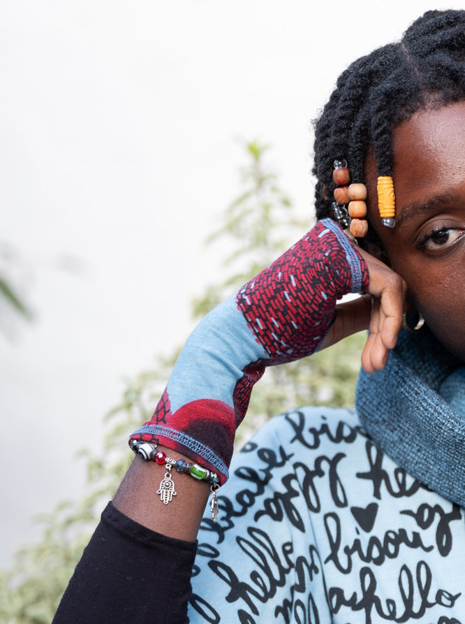 Apportez une touche vibrante et moderne à vos tenues avec ces mitaines, sublimées par des motifs graphiques uniques. Teintes à la main dans notre atelier avec du Bleu de Pastel, elles allient authenticité artisanale et audace contemporaine. Fabriquées à partir de coton 100% naturel, elles sont légères, confortables et écoresponsables.