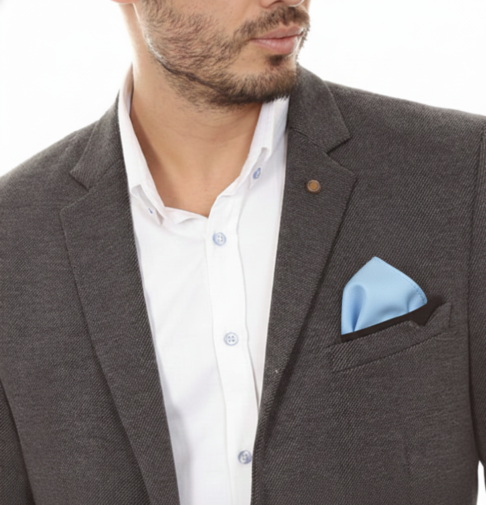 Élégante et raffinée, cette pochette de costume est confectionnée en coton léger puis délicatement teintée au bleu de pastel dans notre atelier toulousain.